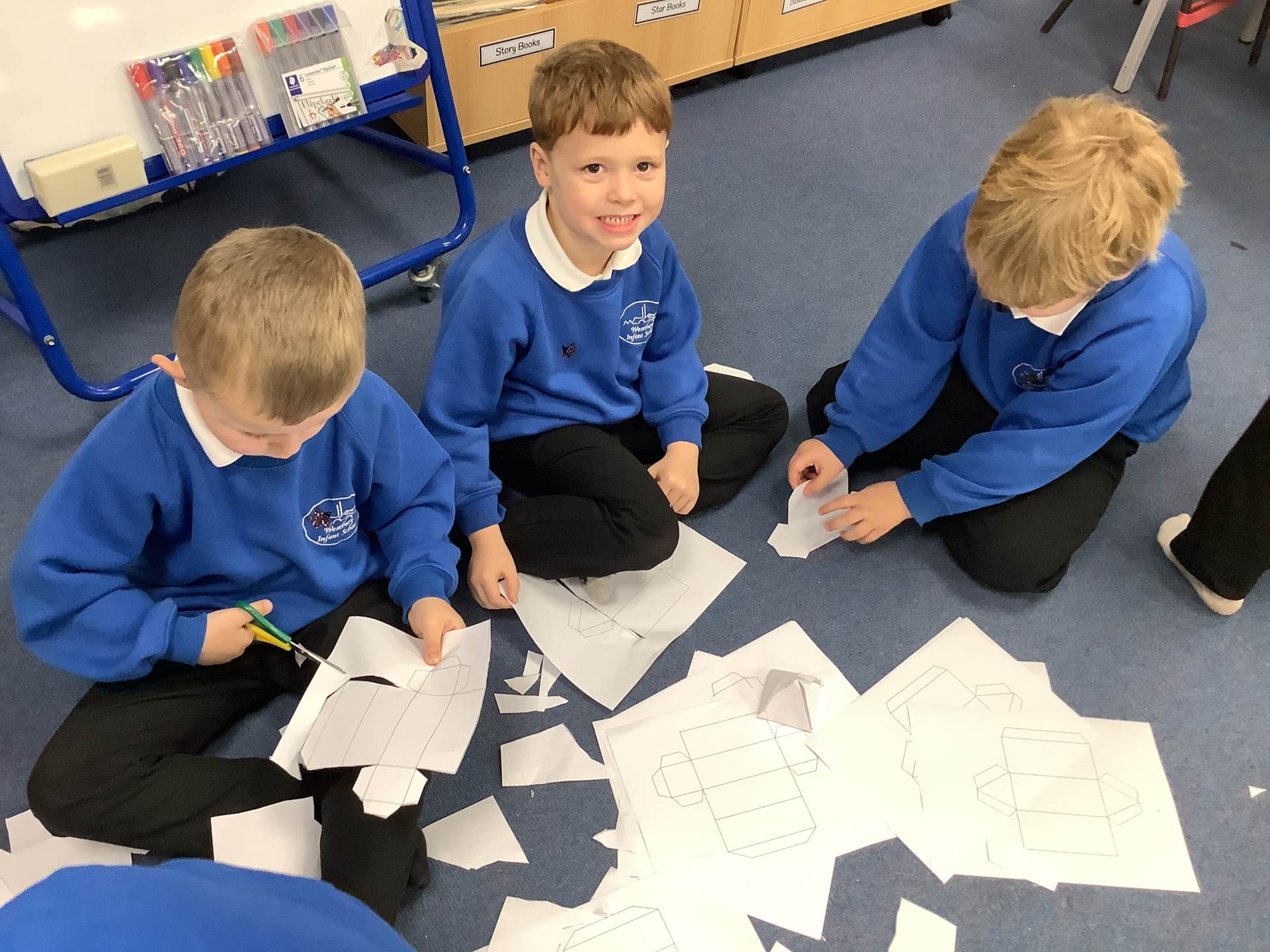 In Maths, we have continued exploring shapes. Early in the week we looked at the 2D shapes that make up 3D shapes. We counted the faces and even tried building some of the shapes ourselves. Later in the week, we moved on to identifying and continuing patterns.