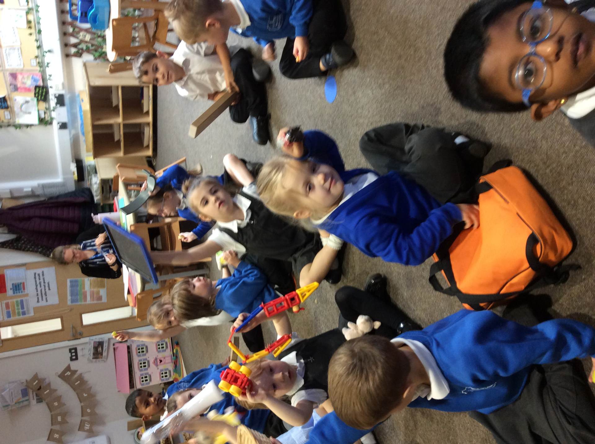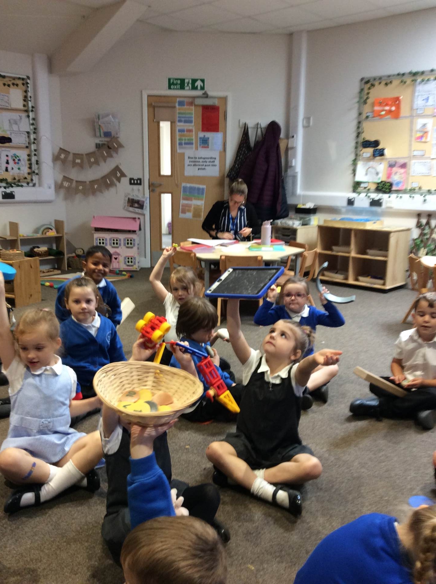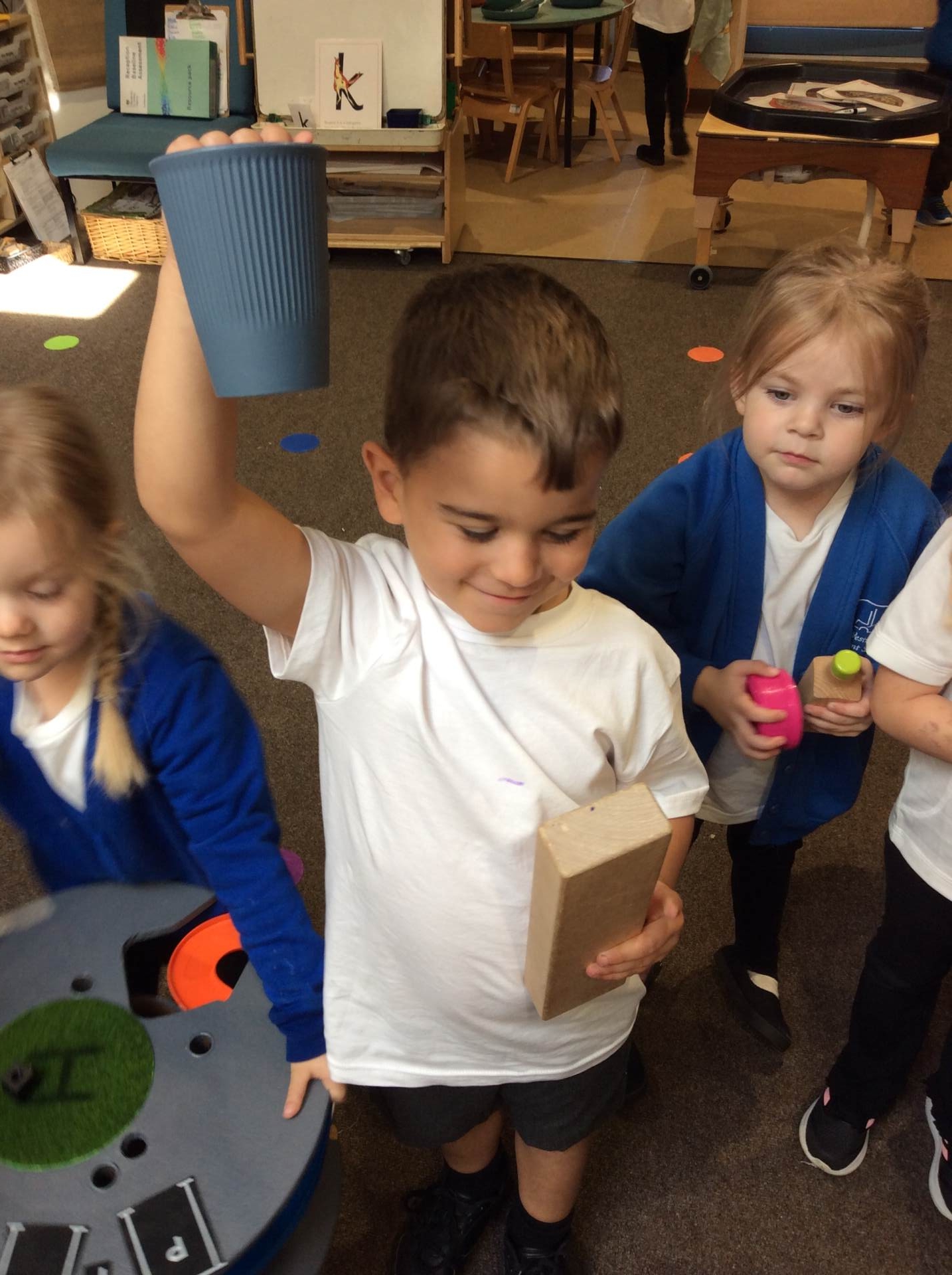 This week for squiggle whilst you wiggle we practised ‘the hump’ which will help when forming letters such as m, n, h, and r. We did this to the song ‘m bop’ by Hanson which was so much fun! In maths our focus has been comparing size and mass of different objects around the classroom. We chose objects and placed them into a big hoop or a small hoop depending on their size. This led us in to comparing the weight of different objects and discussing which one is lighter / heavier. We read the story ‘Dear Zoo’ in one of our maths lessons and tried to guess what animal might be in each box, depending on its size. We then looked at a mystery box and predicted what might be inside before thinking about what else we could fit into it.