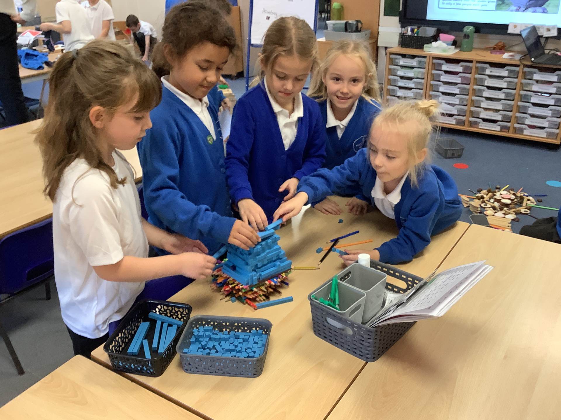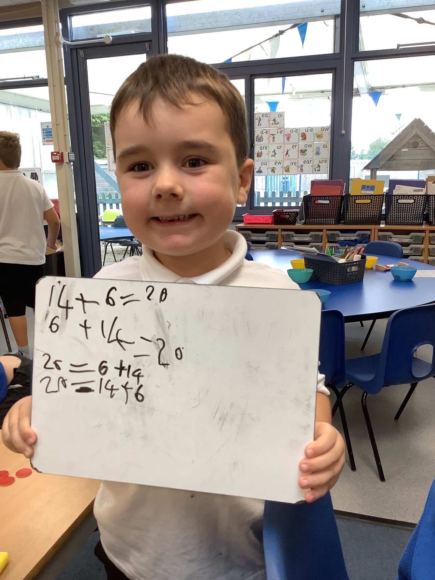 It was all about number bonds in maths. First, we identified the number bonds to 10 before using this knowledge to find the number bonds to 20. We used the tens frames, part- whole models and counters to help us find all of the number bonds systematically.