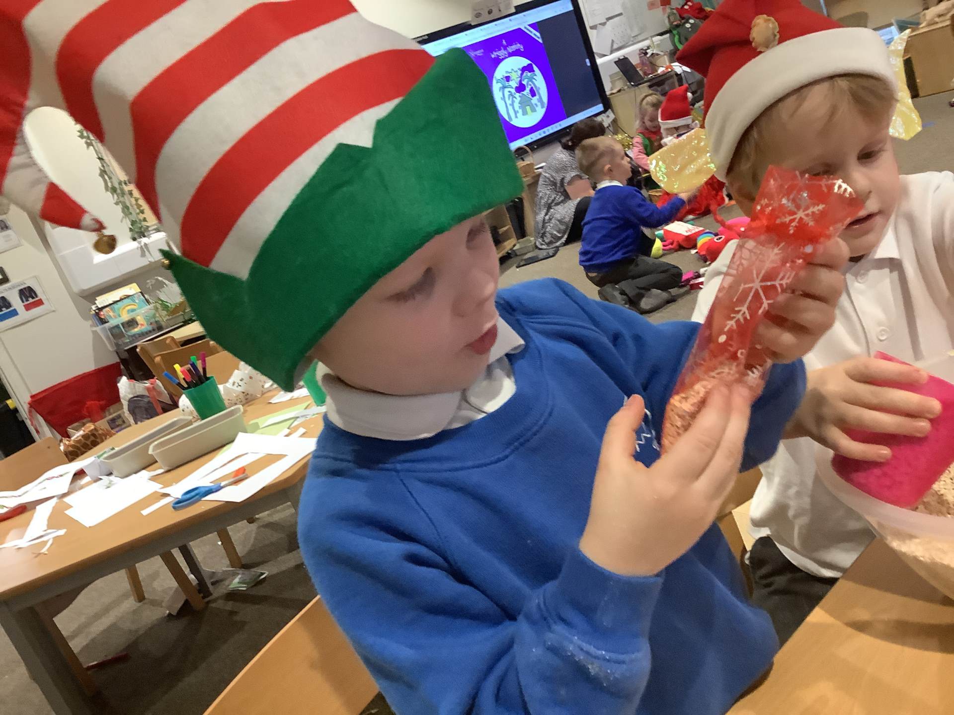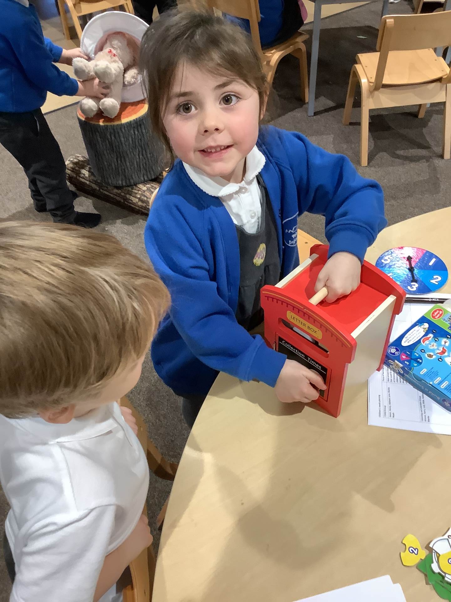 The children have had a wonderful time taking part in some exciting Message Centre activities over the past week. After enjoying the story The Jolly Christmas Postman, they decided they wanted to create their own mail for the Jolly Postman and eagerly set to work making cards and messages. Later in the week, we shared the story Dear Santa, which led to a very special surprise—a mysterious parcel delivered straight to our classroom! The children had great fun guessing what might be inside, sharing lots of imaginative ideas. There were big smiles all around when we discovered it was a brand-new postbox for the class, perfect for sending messages to friends and encouraging even more lovely mark-making and early writing. It’s been a joyful, festive start to our learning!