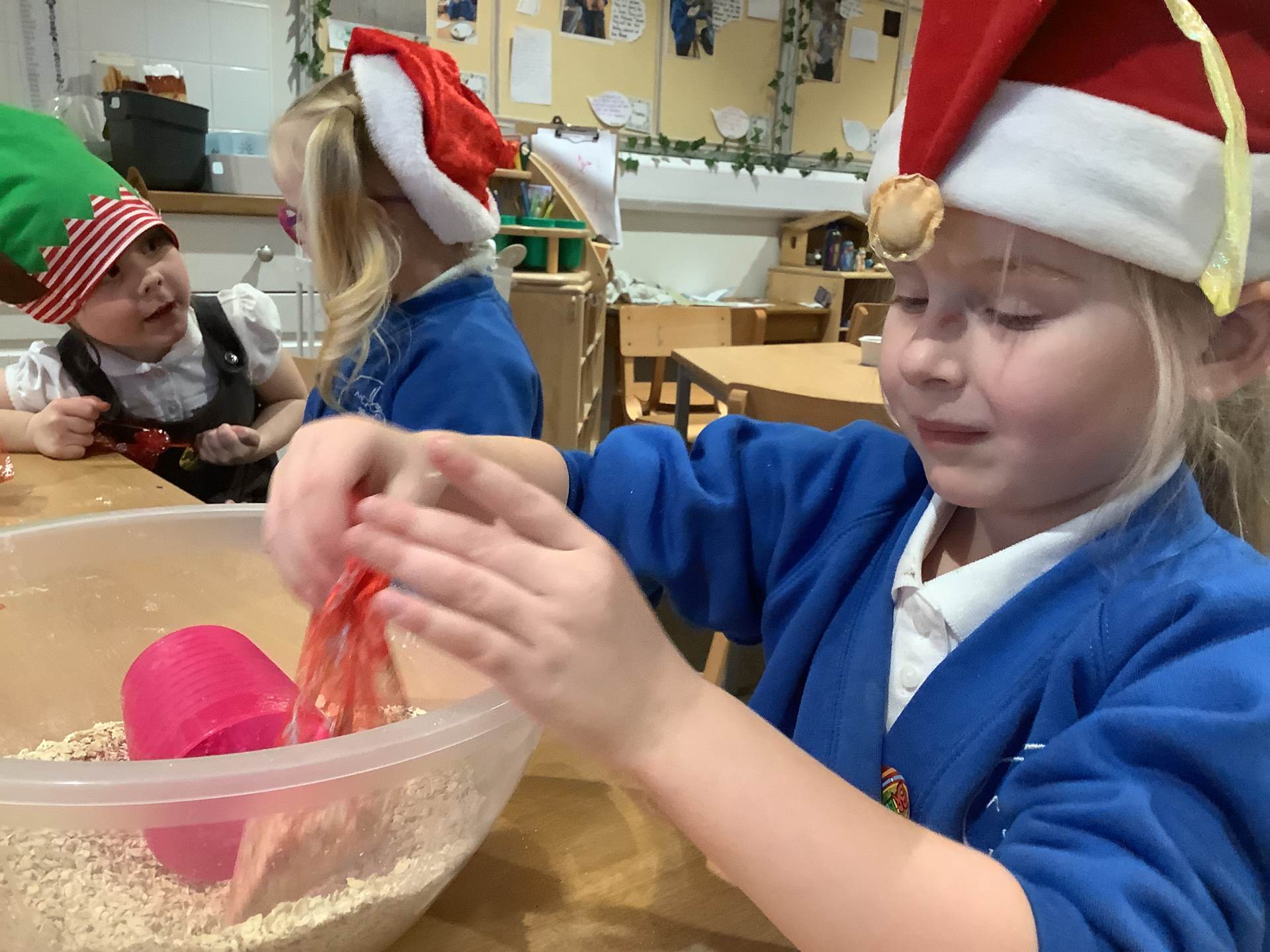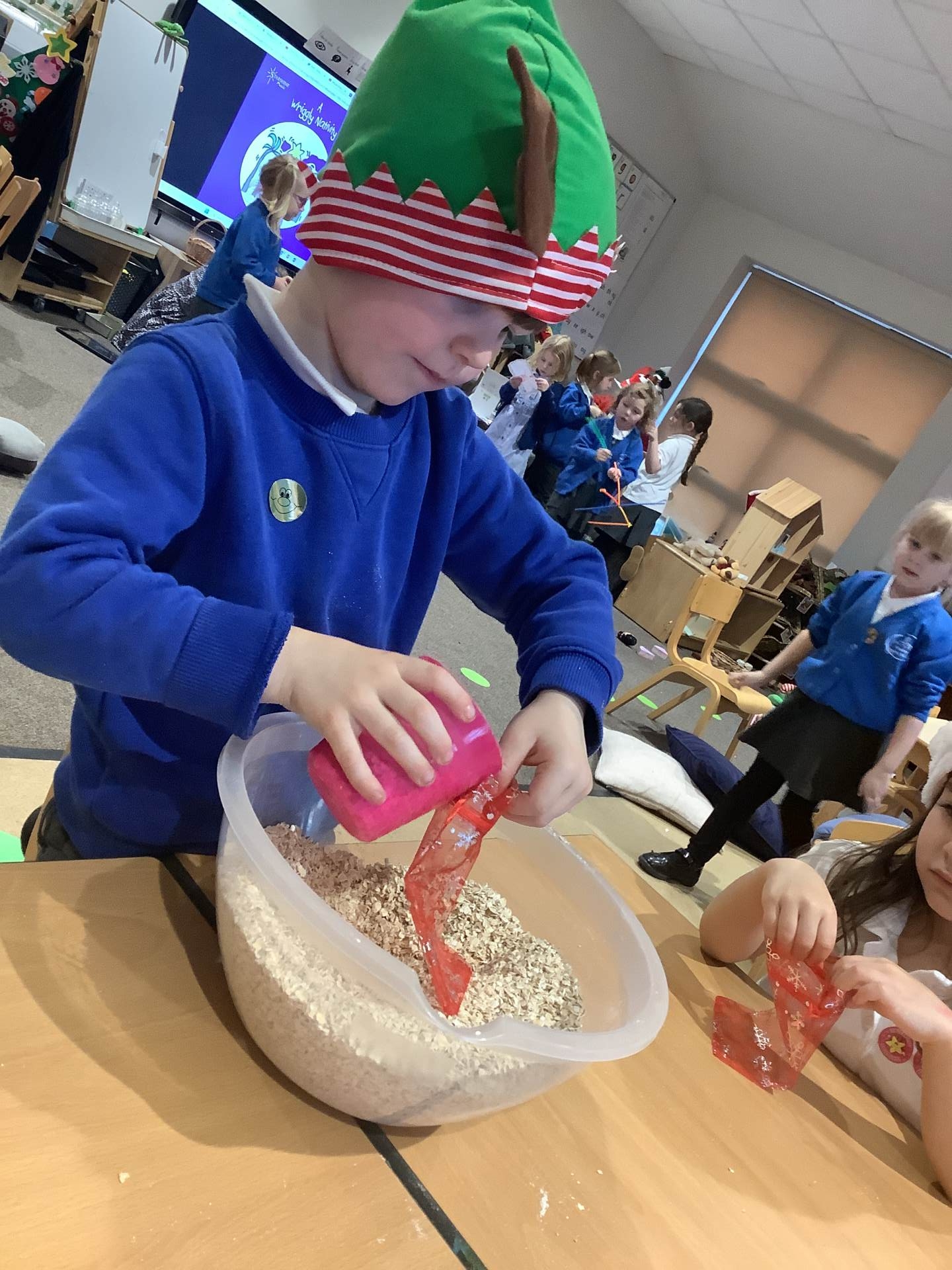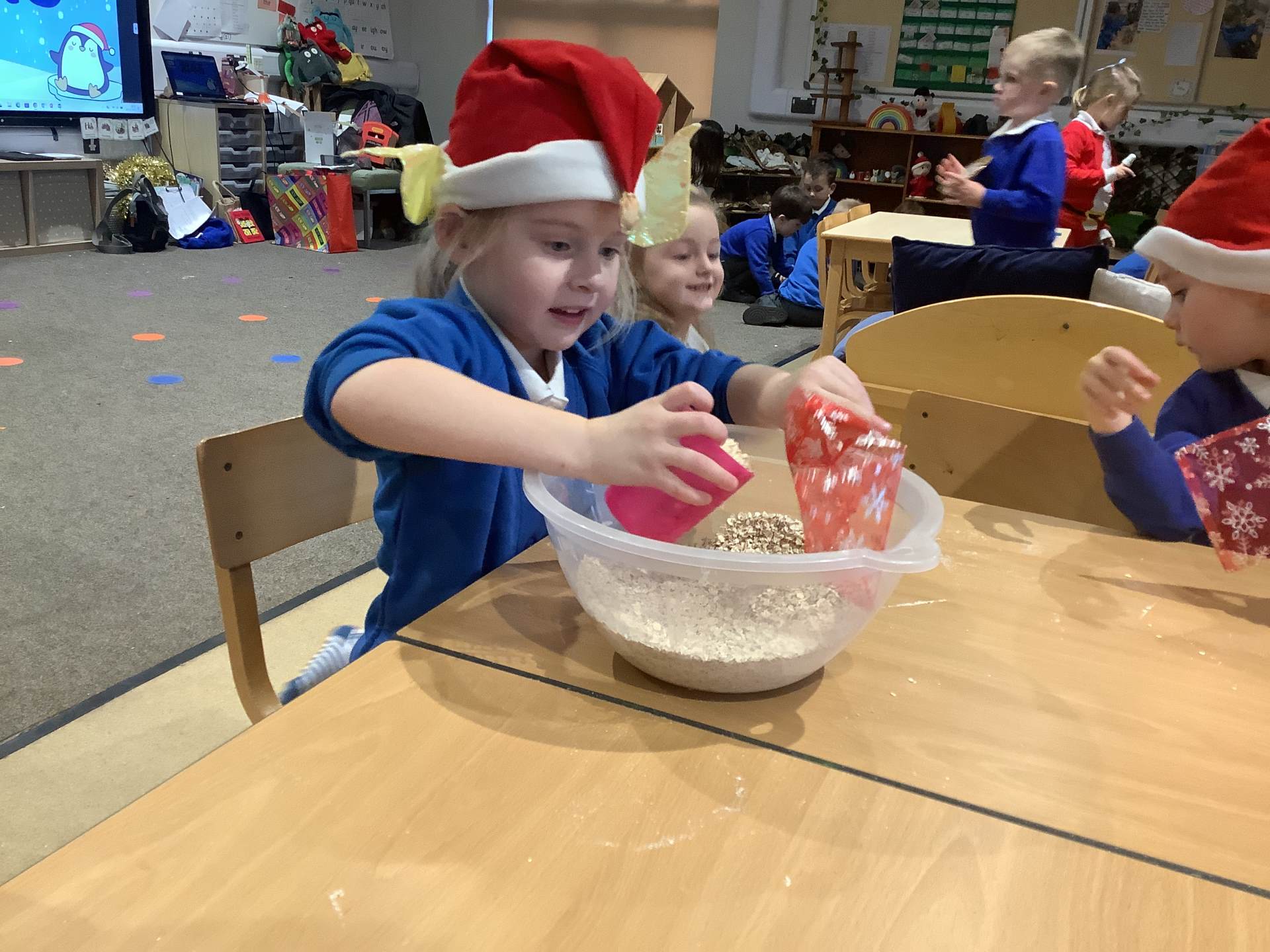 We have really enjoyed learning about Christmas this week and sharing our own experiences and family traditions. The children have continued to learn about the Nativity story and have spent lots of time practising their lines, songs, and actions for our nativity performance, showing wonderful confidence and excitement. We’ve also been busy creating festive crafts, such as decorating our own log slice baubles as either a reindeer or a snowman. One of the highlights this week was making reindeer food for Christmas Eve, and the children loved making a special Christmas wish as they mixed their ingredients together.