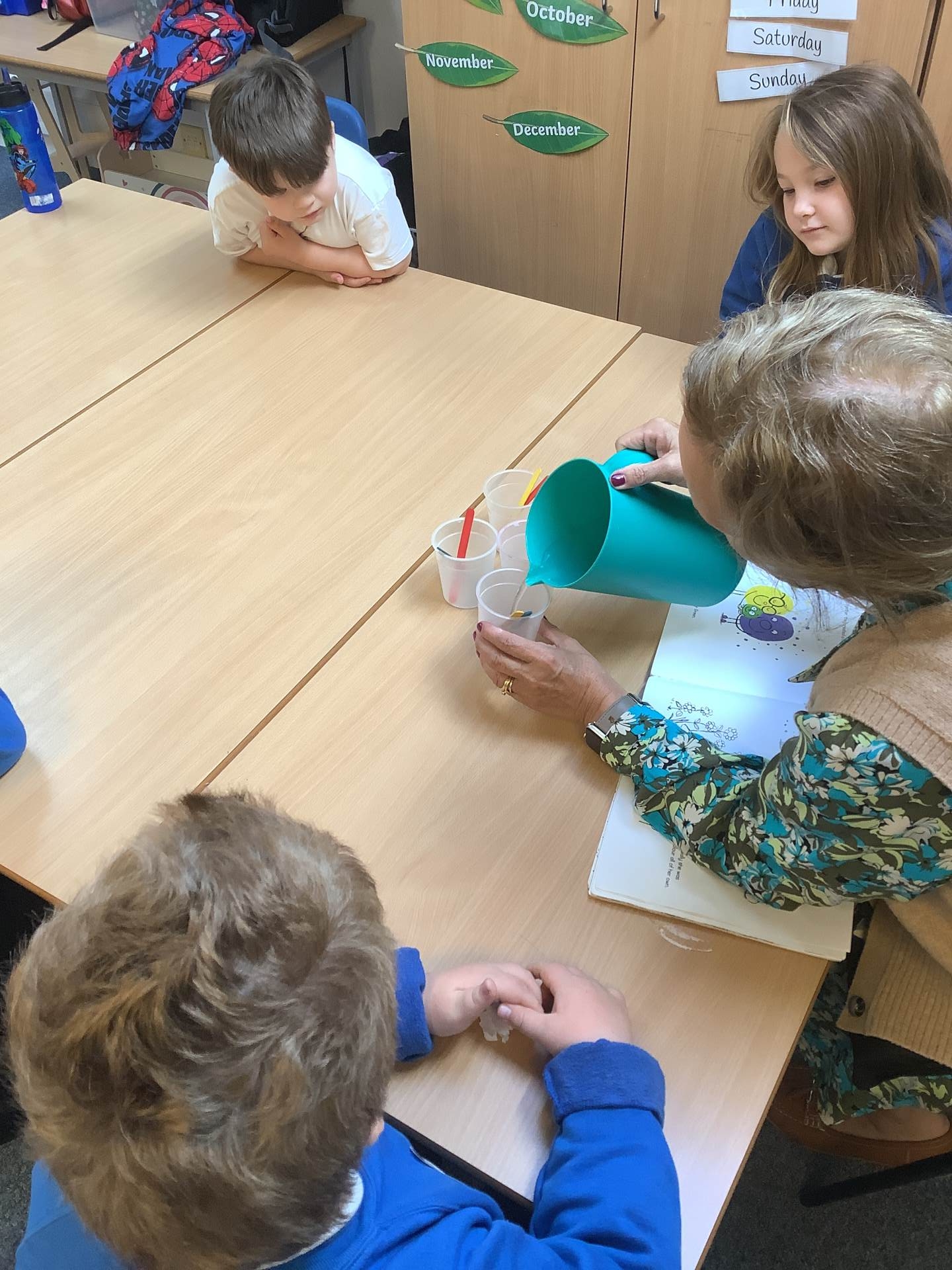 The rest of the class has been exploring measures, using language such as big and small, long and short, heavy and light, and full and empty to compare and describe different objects.
