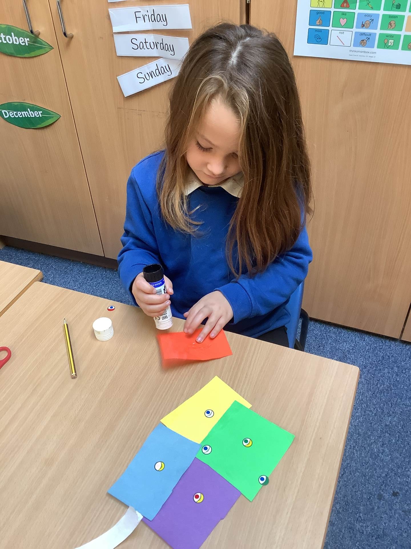 During these sessions, we mixed coloured water to explore how colours change, created our own story characters using collage, mixed different coloured playdough and even built houses for the colours using construction materials!