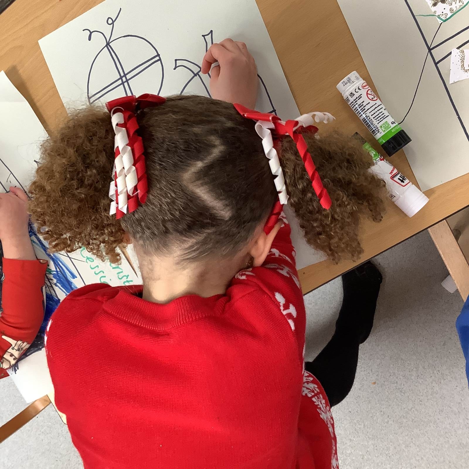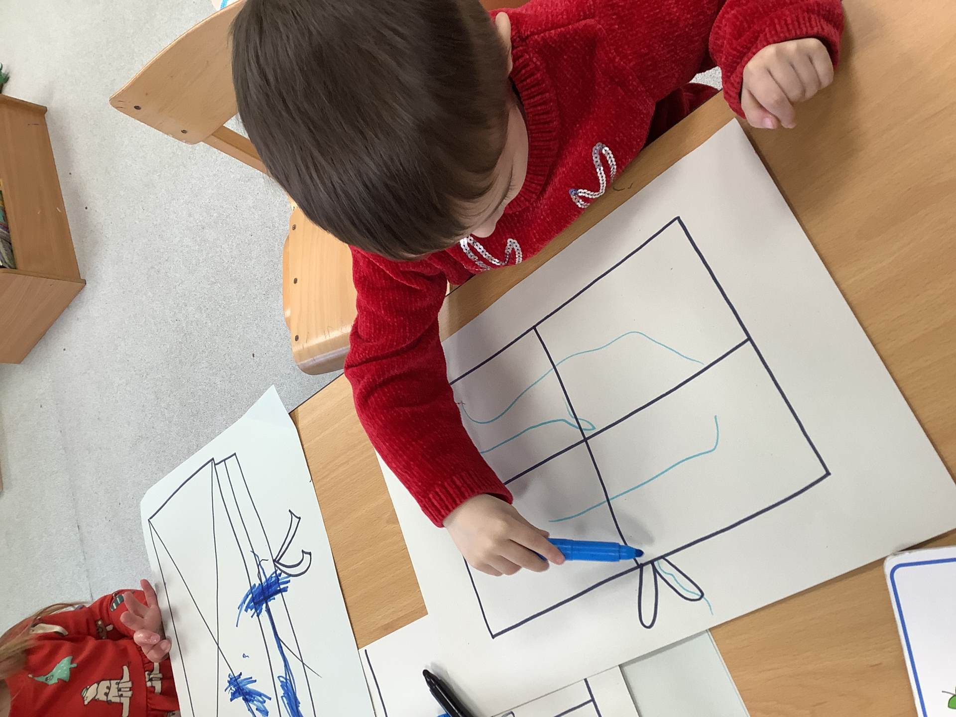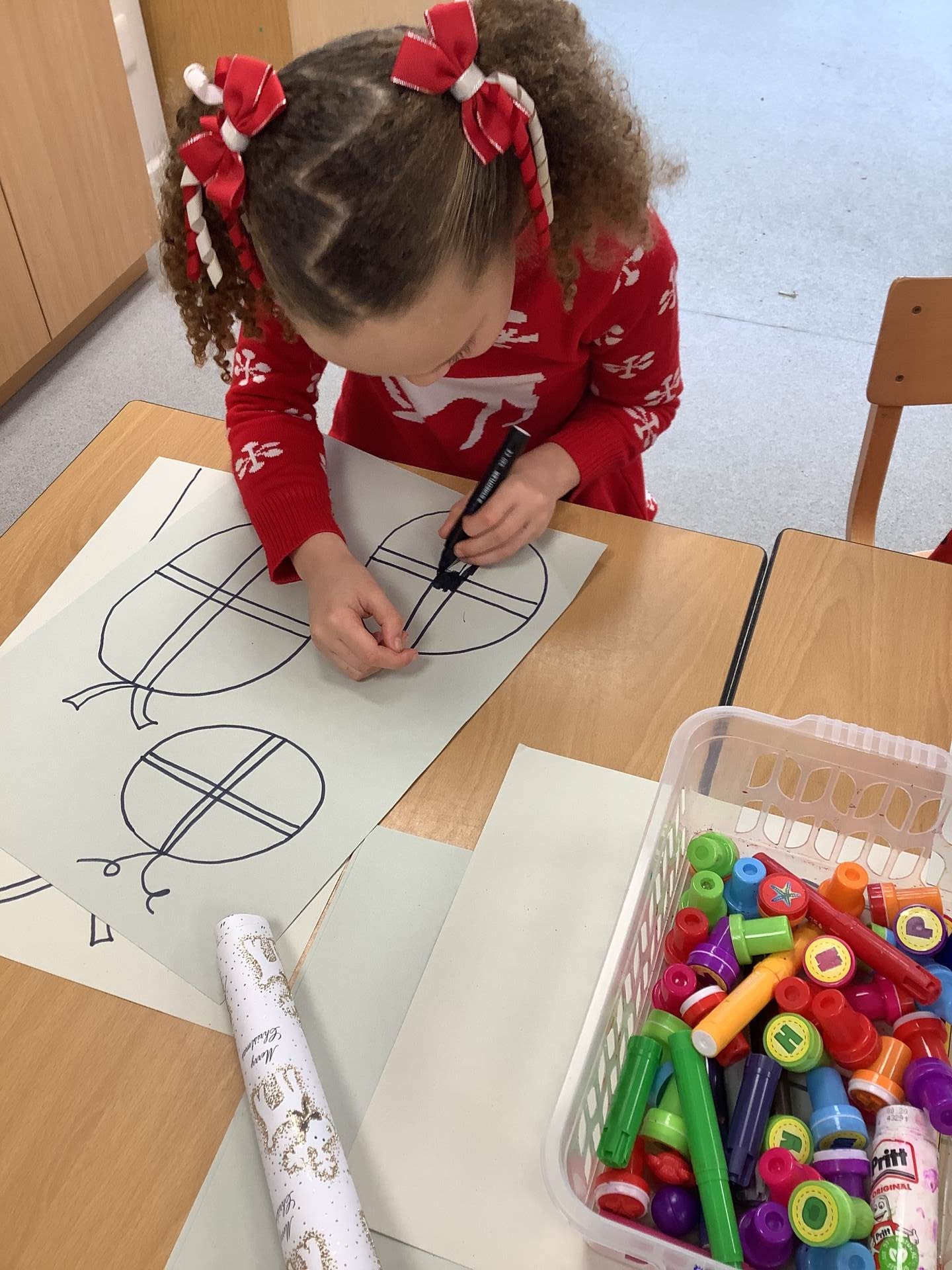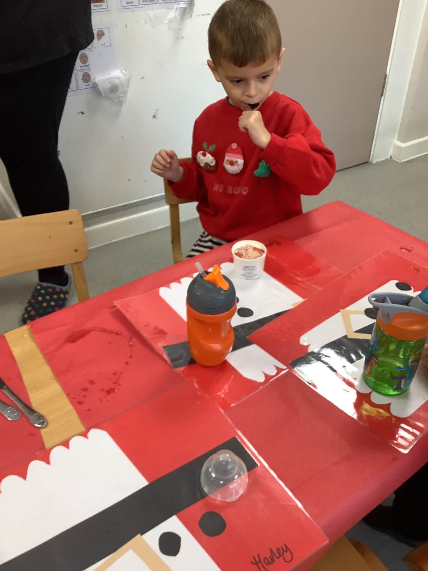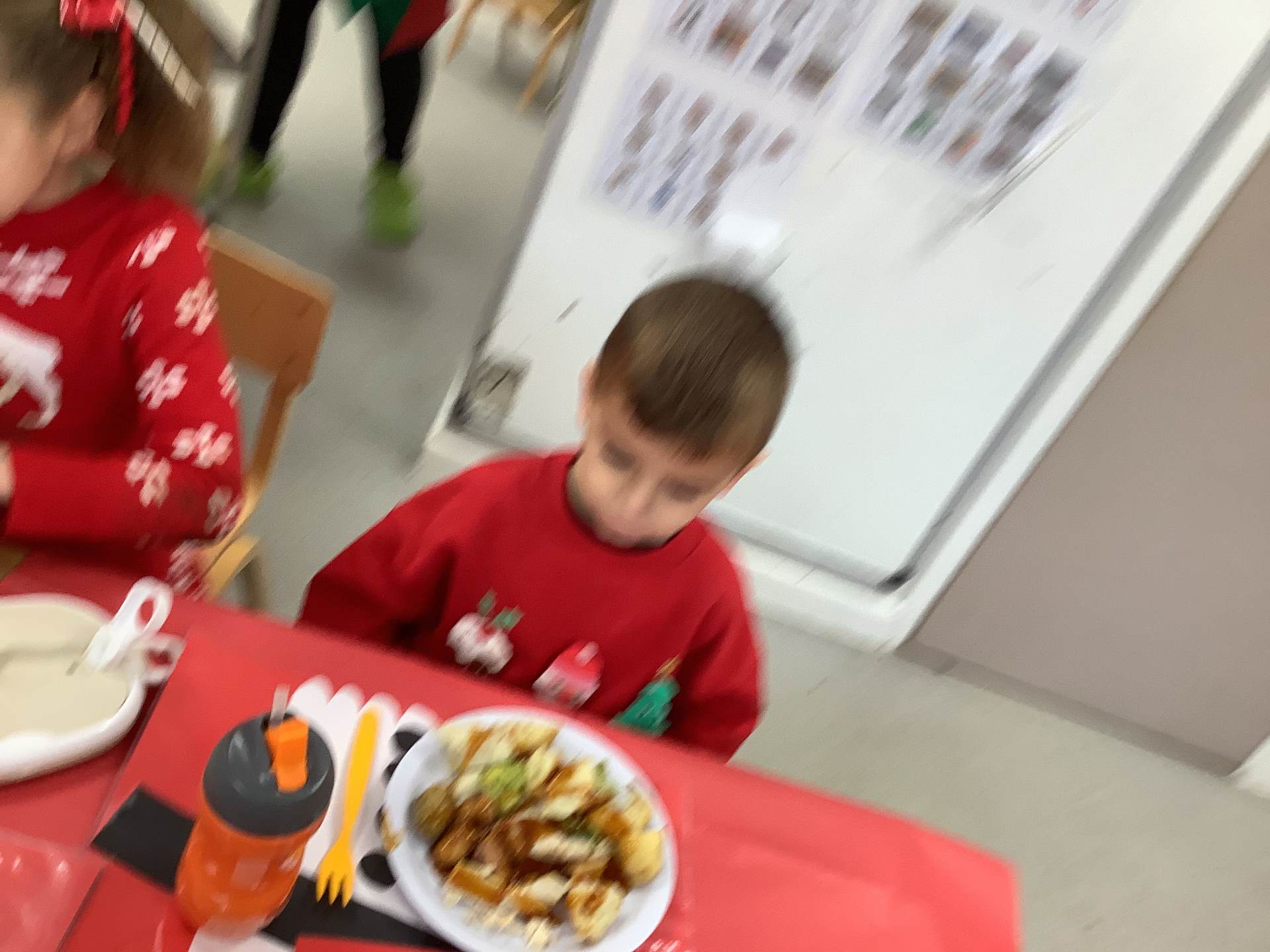 On Tuesday, we wore our Christmas jumpers to school and enjoyed a delicious Christmas dinner. We made Santa placemats and used them at lunch time. Afterwards, we had a fun Christmas party with the Bumblebee class.