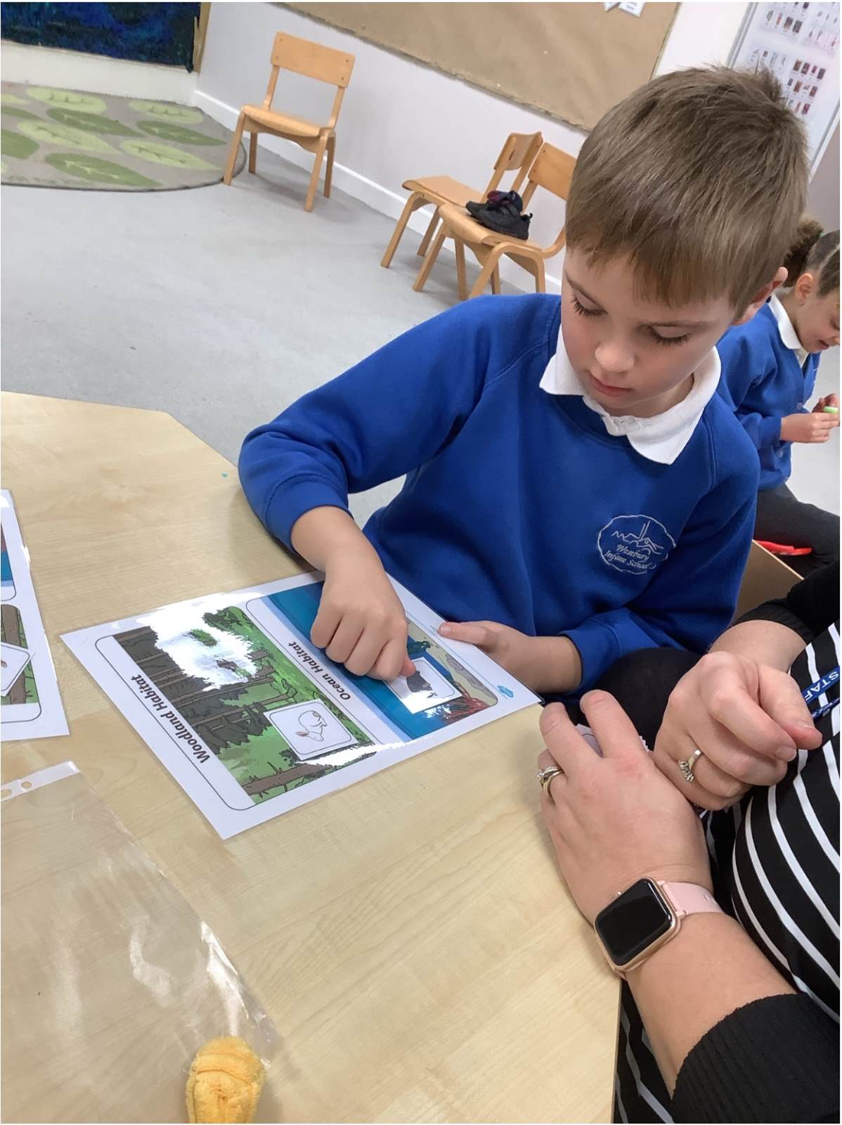 In our topic lessons, we’ve been learning all about habitats, focusing especially on the woods. The children explored different woodland animals, watched videos, and created some beautiful artwork inspired by the creatures that live there. They also practised sorting animals into two groups: those that live in the woods and those that live in the ocean—showing great thinking skills.